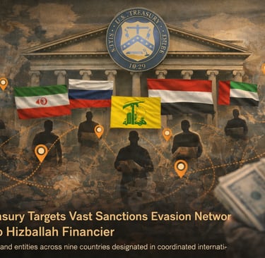 The U.S. Department of the Treasury has announced one of its most expansive sanctions actions in recent years, designating 52 individuals and companies across nine countries for their roles in a global money laundering and sanctions evasion network supporting Hizballah financier Nazem Said Ahmad, a Specially Designated Global Terrorist since 2019.